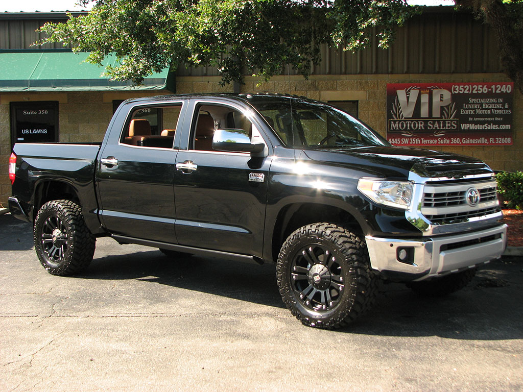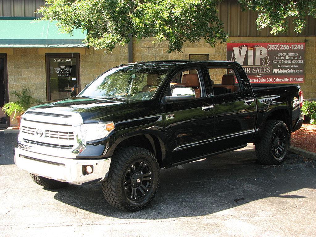 Looking for a nice Attitude Black Tundra 1794 Edition? Check this one out. All upgrades have been installed at the local Toyota dealership when new. This truck has a $49,882.00 MSRP, not including the upgrades & accessories. This truck features a Toytec 2" Lift Kit, 22-Inch KMC XD778 Monster Series Wheels, Nitto Mud Grappler Tires, AMP Research Power Running Boards w/ LED Illumination, Magnaflow Dual-Exhaust, 4WDemand Part-Time 4WD w/ Electronic Transfer Case, A-TRAC & Auto Limited-Slip Differential, High-Definition 7" Entune w/ Navgiation & App Suite JBL Premium Sound System, Heated & Cooled Driver & Front Passenger Seats, Power Adjustable Driver & Passenger Seats, Two-Position Driver Seat Power Sliding & Tilt Moonroof, Power Rear Window, Blind Spot Monitoring System w/ Cross-Traffic Alert, Toyota-Installed Spray-In Bedliner, Toyota-Installed Clear Door & Hood Paint Protection, Homelink Garage Opener, Power-Tilt & Telescope Steering Column, Dual-Zone Automatic Climate Control and LED Running Lights. This truck has never been in an accident, never had any paintwork, nor been smoked in. It comes with all the books, keys, window sticker and a clean Autocheck report. You are buying this one to be 100%. For more information, call or email Ian Peebles at (352) 256-1240. Thank you for your interest!