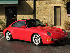 | Looking for a nice 993 Targa? Check this one out. This Targa has just had a new set of Bridgestone Potenza tires mounted less than 1500 miles ago and has been fully serviced. This car is very complete with original owner's manuals, both original flip keys, two additional standard Porsche crest keys and one small Porsche door remote along with the crest key chain. It also has a binder with comprehensive service records, the original window sticker, two copies of the Porsche Factory certificate of authenticity, the original certificate of authenticity, an original 993 Targa sales brochure wrapped in plastic; it also comes with a battery tender, custom Lloyds floor mats with plastic protectors, original Targa top tools w/ original plastic bag, and original spare valet key with attached German-language plastic information card. The Targa top on this car is 100% functional with no rattles or leaks and has been recently serviced in the past two years. This car is highly sought after and will be sold, do not delay if you have been looking for one. Buy this car and let it appreciate in value. Remember, they are making 0 more sliding glass roof 993s in Guards Red. You are buying this one to be 100%. This car comes fully serviced. There has never been any smoking in this vehicle nor has it ever seen snow. You are buying this one to be 100%. For more information, call Ian Peebles at (352) 256-1240. Thanks! |